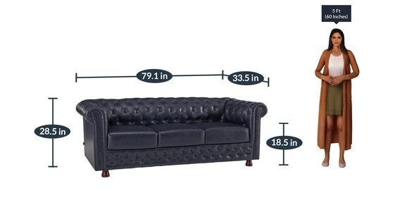 H 28.5 x W 79.1 x D 33.5; Seating Height- 18.5 (all dimensions in Inches)