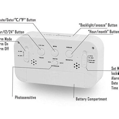 nBrand SHREE HANS FASHIONnColour White.nDisplay Type DigitalnStyle ModernnProduct Dimensions 13W x 8H CentimetersnShape RoundnMaterial PlasticnFrame Material PlasticnAre Batteries Included NonMounting Type Tabletop