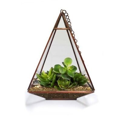 Everyone loves to present their home attractive by growing indoor plants. Decorating your household with beautiful and attractive indoor plant enhance the ambiance of the house. What if the plants are placed in transparent containers? Having such containers with breathtaking designs increases your dignity in your neighborhood. Yes, you can decorate your household with our Trust Basket Triangular Tower Terrarium.nnThis is made of galvanized iron metal and hard glass. You can place the plants inside the Terrariums and enjoy the view. It has an opening at one side from which the plant can be placed inside. Its Triangular-shaped structure looks like a pyramid with a chain to suspend makes your home more attractive. You can suspend this Terrariums in your balconies, Porticos and even in your living room. Its fine finishing with no sharp edges makes it safe to handle. So, what are you thinking? Hurry and grab those Terrariums today itself.