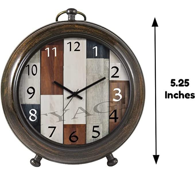 Brand TYAGInColour BrownnStyle AntiquenProduct Dimensions 12.7W x 12.7H CentimetersnShape RoundnMaterial WoodnMounting Type TabletopnAlarm Clock NonNumber of Items 1nOperation Mode Mechanical